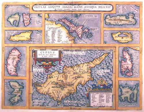 on one sheet, showing Cyprus, Rhodes, Lesbos and other Greek islands.