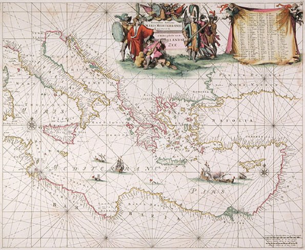 and impressive sea chart of the eastern Mediterranean stretching from