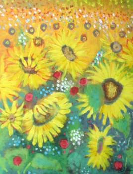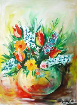 | Sunflowers by Ottulescu Daniel. 61 x 81 cms. Acrylic on canvas. Impressionist. Price: Cy P 85.00 | Vase with flowers by Leonte Irina. 50 x 70 cms. Acrylic on canvas. Modern. Price: Cy P 95.00 |