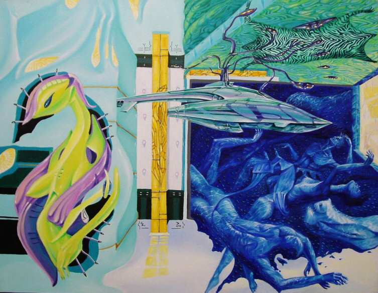 | HORIZON-PLACENTA, by Goila Cristian. 80 x 60 cms. Oil on canvas. Surrealist. Price: CyP. 105.00 |