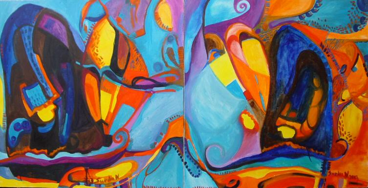 | 'WATCH THE STORIES'-Diptych. by Surdu Natalia. 102 x 56 cms. Oil on canvas. Decorative. Price: CyP: 125.00 |