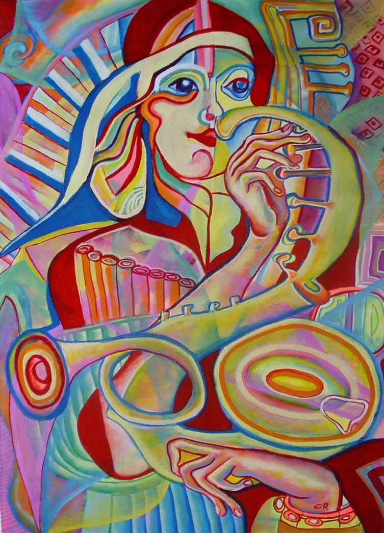 | LICENSED IN MUSIC. by Cata Rodica. 61 x 90 cms. Oil on canvas. Neomodernist. Price: CyP 115.00 |