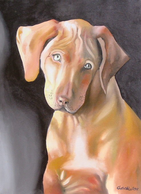 | LITTLE PUPPY, by Genescu Cristinel Petru. Oil on canvas. 51x69 cms. Realist. Price: CyP 95.00 |