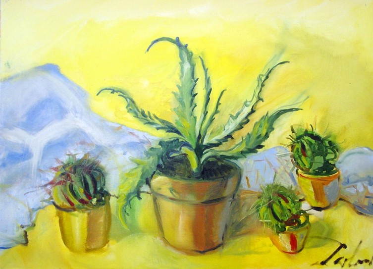 | STILL LIFE-CACTUS, by Salomia Diana. 70x50 cms. Impressionist. Oil on canvas. Price: CyP. 110.00 |