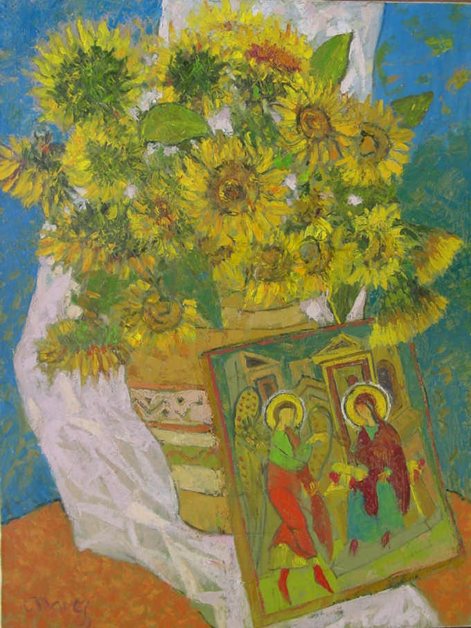 | SUNFLOWER WITH ICON, by Mares Florin. Oil on canvas. 61x81 cms. Impressionist. Price: CyP. 180.00 |