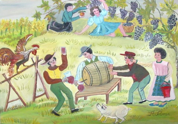 | HAPPY AUTUMN by Andronic Salomia. Oil on canvas. 59 x 41 cms. Naive art. Price: Cy P 110.00 |