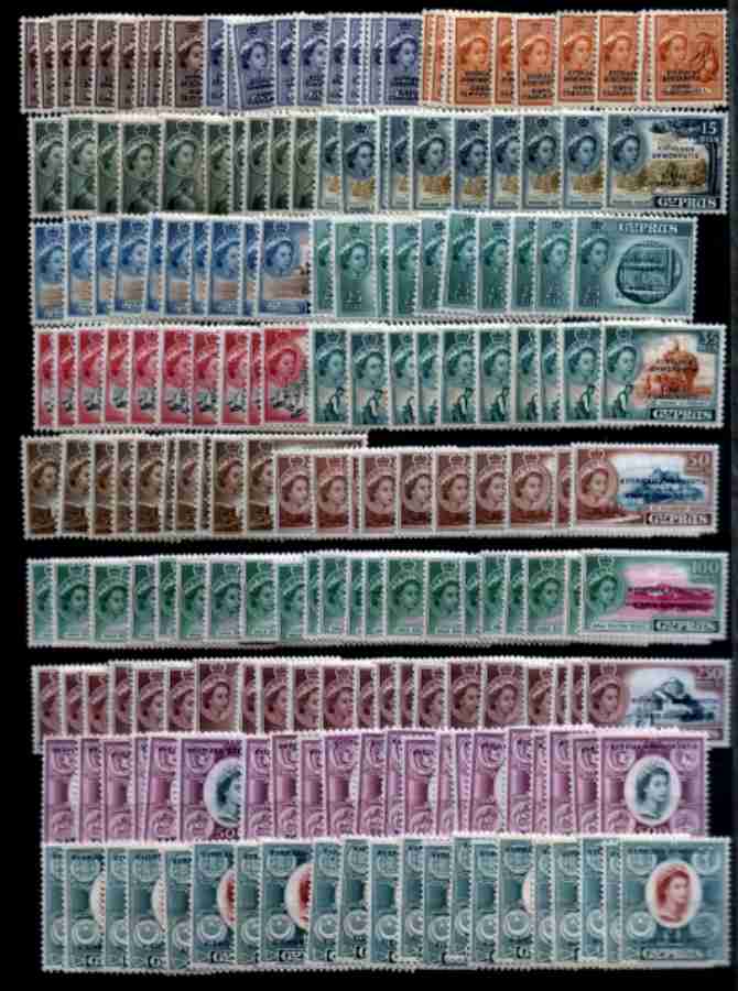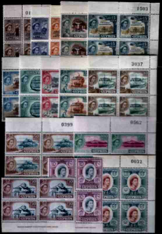 | 1960. Overprinted Blocks of Four. Unmounted. All values with control number except 250 and 500 mils which are with imprint. Very scarce. Price: $ 650.00 | 1960. Overprinted. Unmounted Mint. Investment offers Per 5 sets. Price: $ 550.00. Per 10 sets. Price: $ 1000 Per 20 sets. Price: $ 1870. |