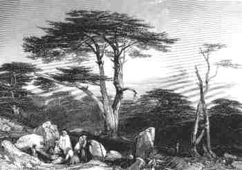 | RUINS OF TYRE Art: J.D. Harding Engr: W. Finden 1836 Size: 15x10 cms. Ref: # TL015 Price: $ 26.00 | THE CEDARS OF LEBANON Art: J.D. Harding Engr: W. Finden 1836 Size: 14.5x10 cms. Ref: # TL016 Price: 26.00 |