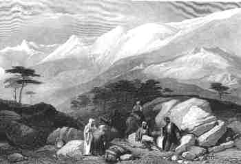 | LEBANON FROM TRIPOLI Art: J.M.W. Turner Engr: E. Finden 1836 Size: 14x9.5 cms. Ref: # TL017 Price: $ 26.00 | THE CEDARS OF LEBANON - DISTANT VIEW Art: J.D. Harding Engr: E. Finden 1836 Size: 15x10 cms. Ref: # TL018 Price: $ 26.00 |
