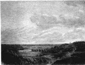 woods stretch, whilst a river flows in the plain; and a sky of heavy