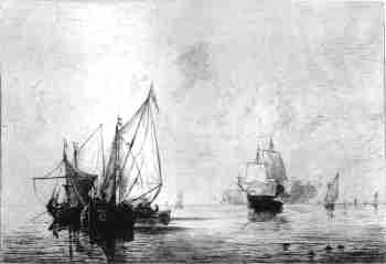 Willem Van De Velde (1633-1707). The sea is still, slightly rippled, and