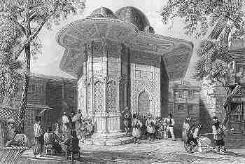 | GREAT AVENUE IN THE TCHARTCHI Art: W. H. Bartlett. Engr: H. Griffiths.1838 .Size: 18.5 x12 cms. Ref # T011 Price: $ 28.00 | FOUNTAIN IN GALATA Art: W. H. Bartlett .Engr: H. Griffiths 1838 .Size: 17.8 x12 cms. Ref # T012 Price: $ 28.00 |